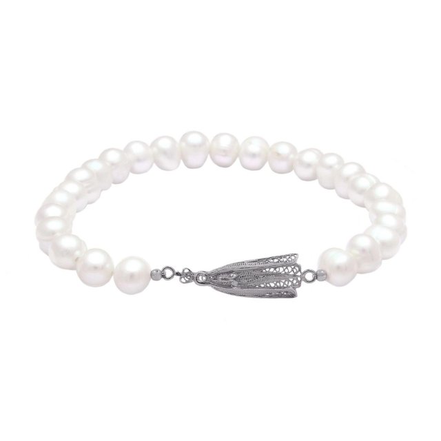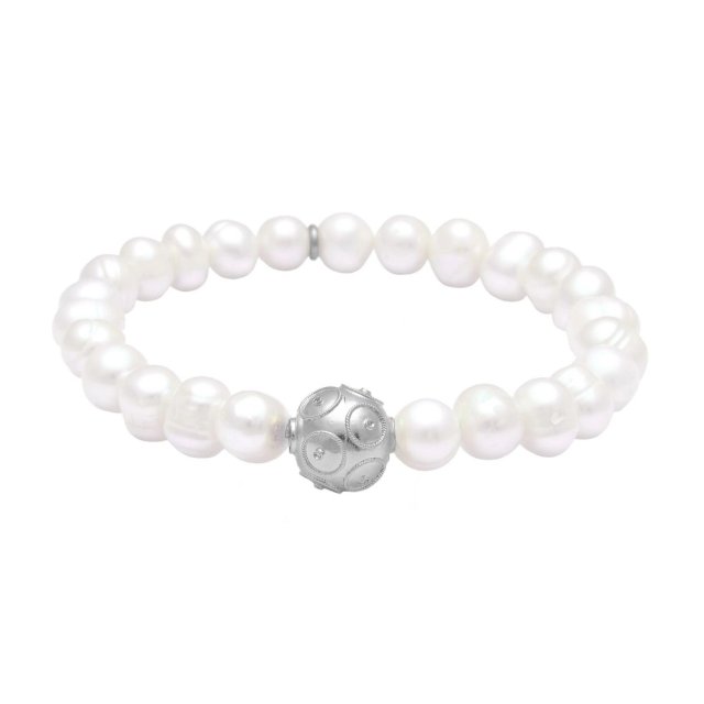 E59 珍珠併銀波手鏈 (貨期預5月中)