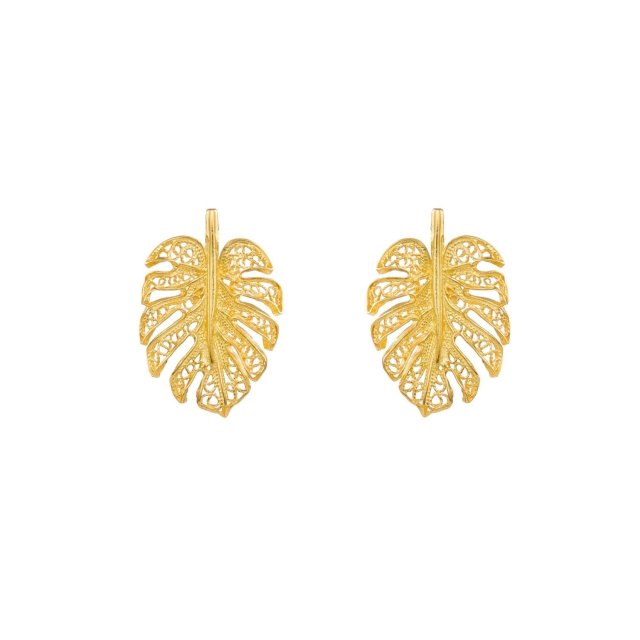 E73 金色葉形耳環 (貨期預5月中)