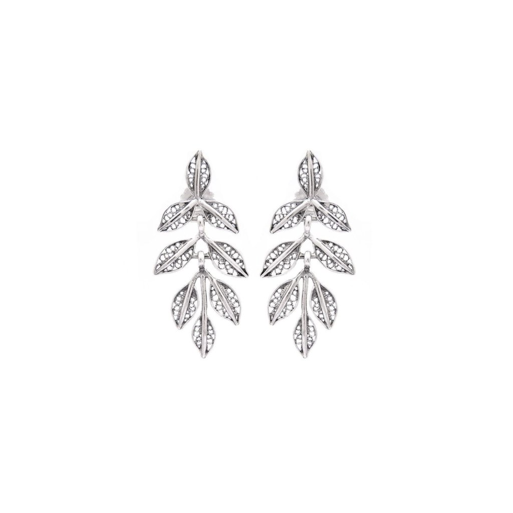 E4 銀色葉子垂釣款耳環 (貨期預5月中)