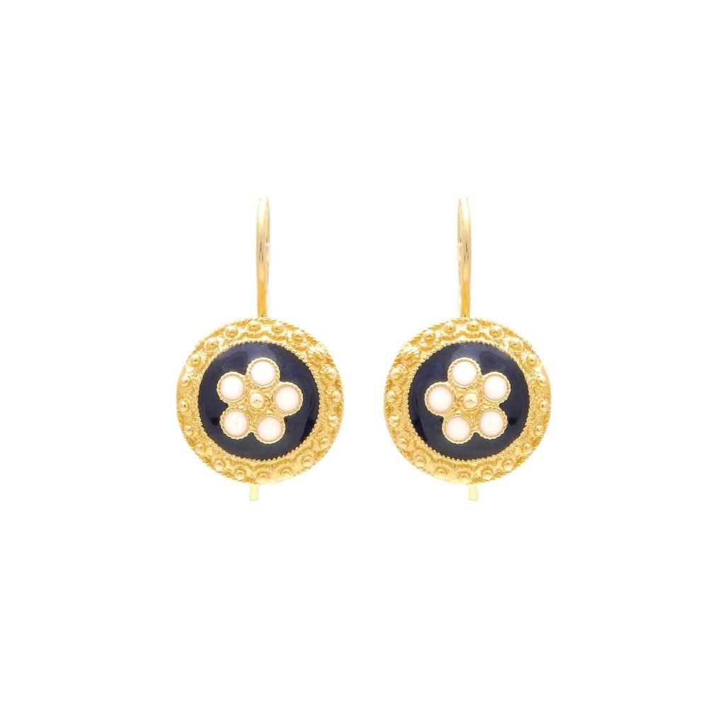 E74 藍併金圓形花花圖案耳環 (貨期預5月中)