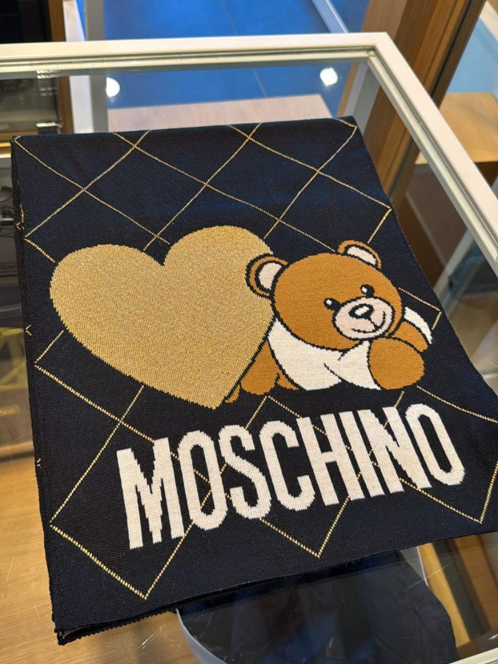 CT1326 Moschino新款熊仔心形菱格頸巾 (貨期預11月頭)