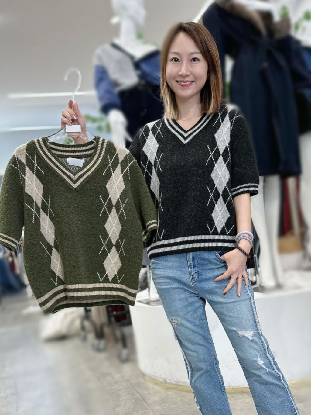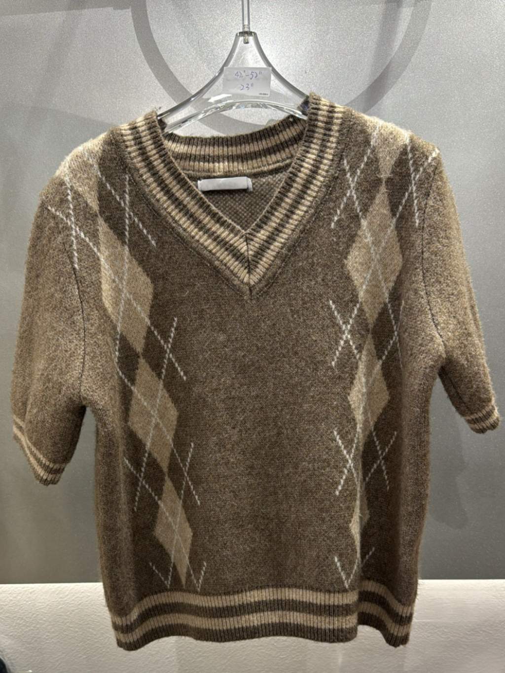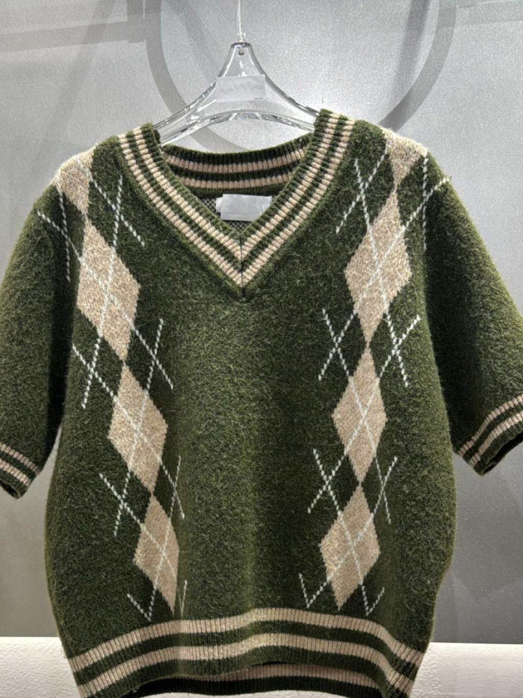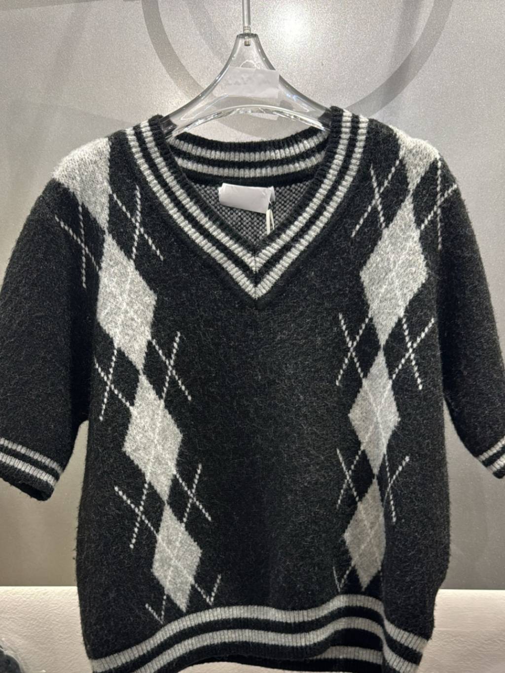 CT1538 V領菱格短袖針織衫 (貨期預12月頭)