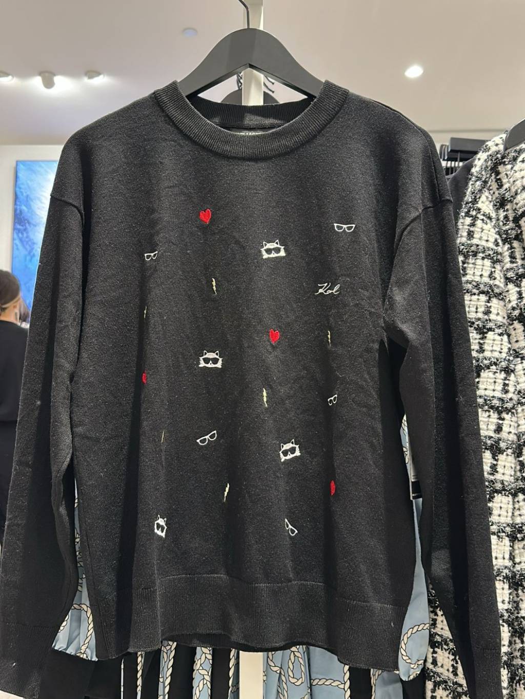 DE1739 KL 刺繡多貓心形針織衫 (貨期預1月尾)