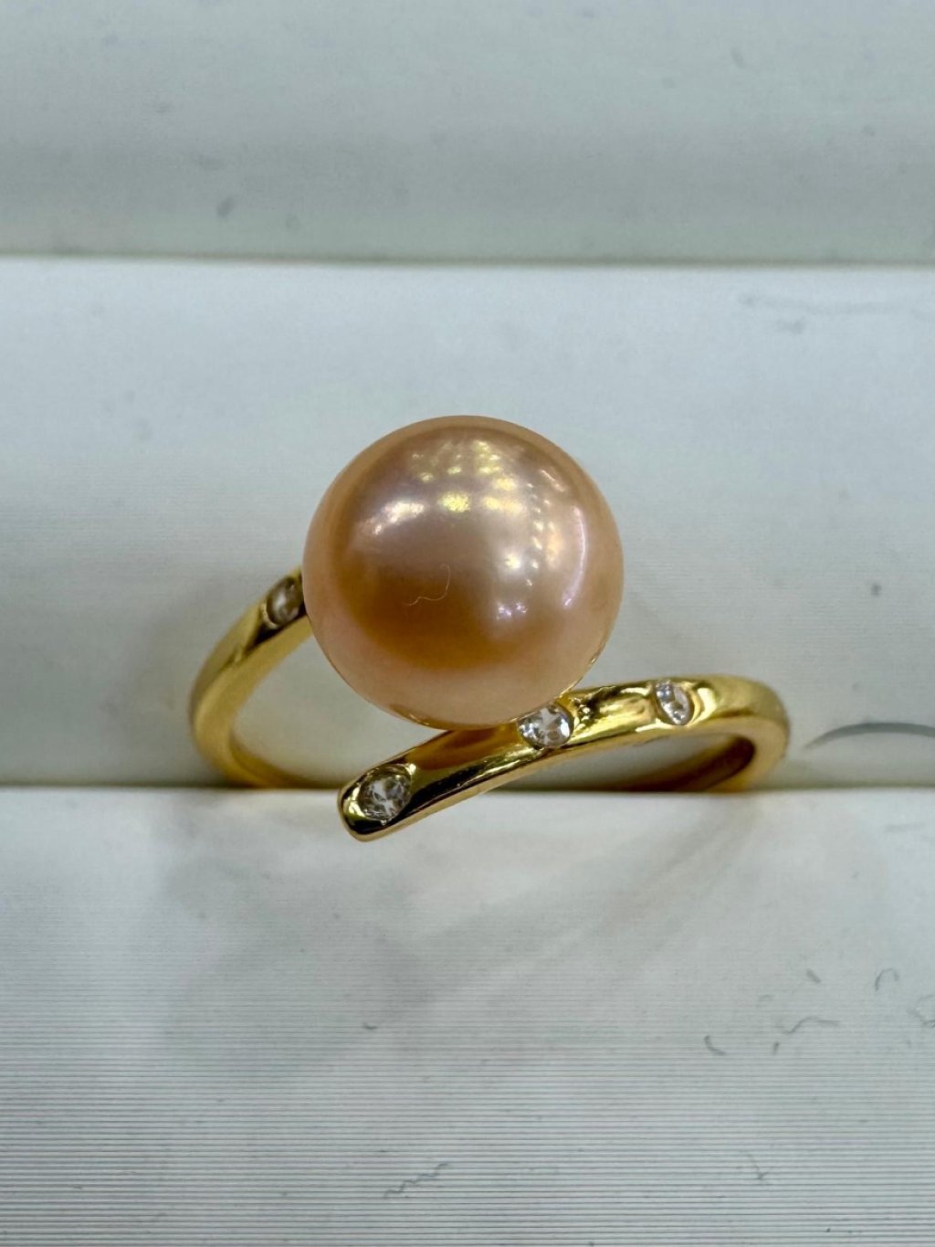JA2910 S925金色淡水無核(中國紅)平衡系列戒指 8.5mm (貨期預3月頭)