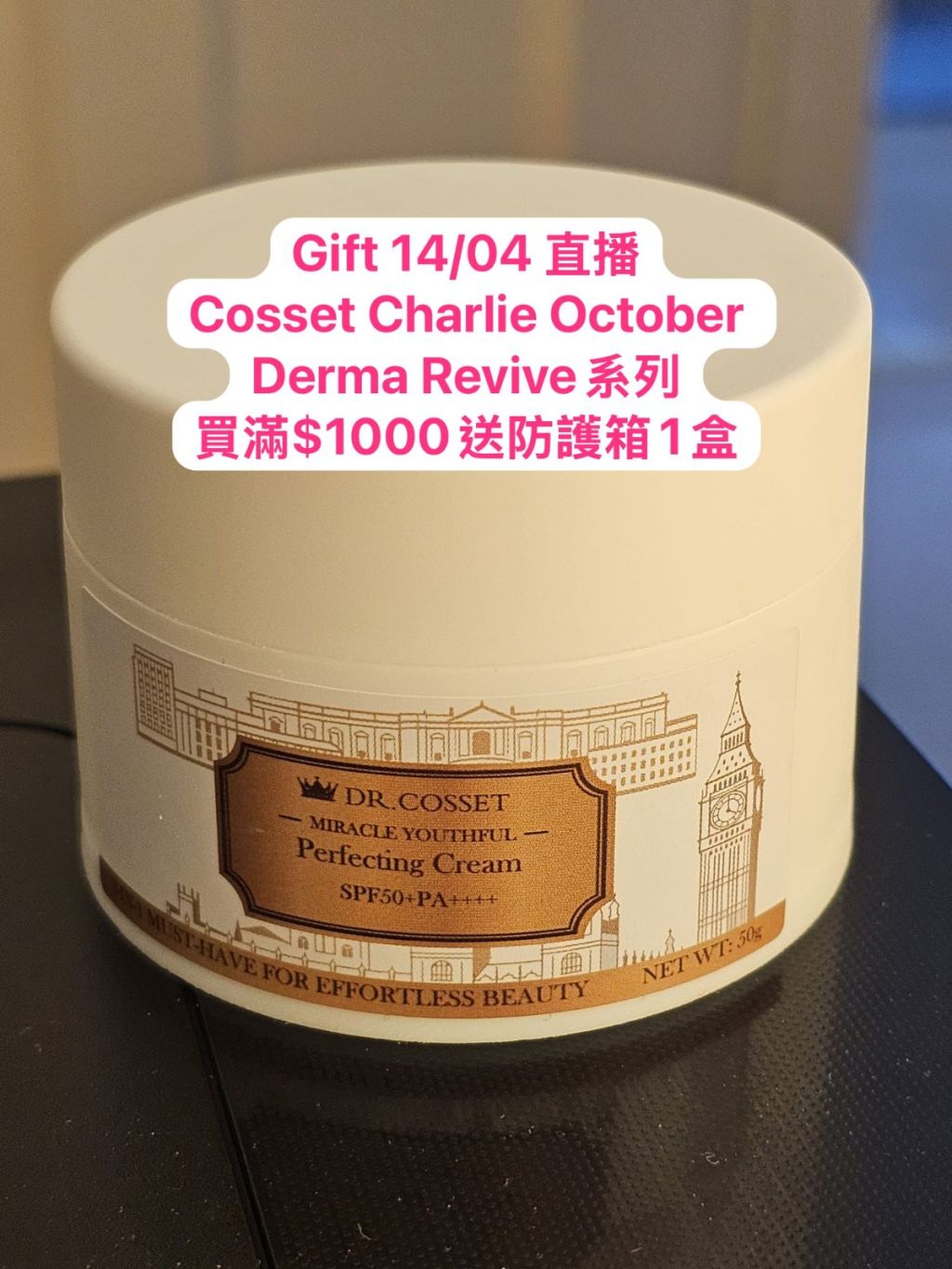 GIFT AP1499 14/04 直播 購買 Dr Cosset, Dc Charlie, Dr October, Derma Revive 系列產品滿 $1000 送冰感光透防護霜 50g (SPF50+ PA++++) 1盒 (貨期預5月中)